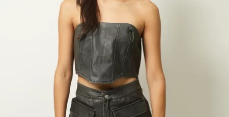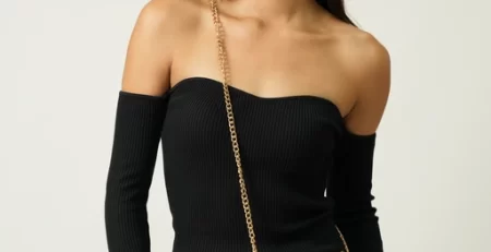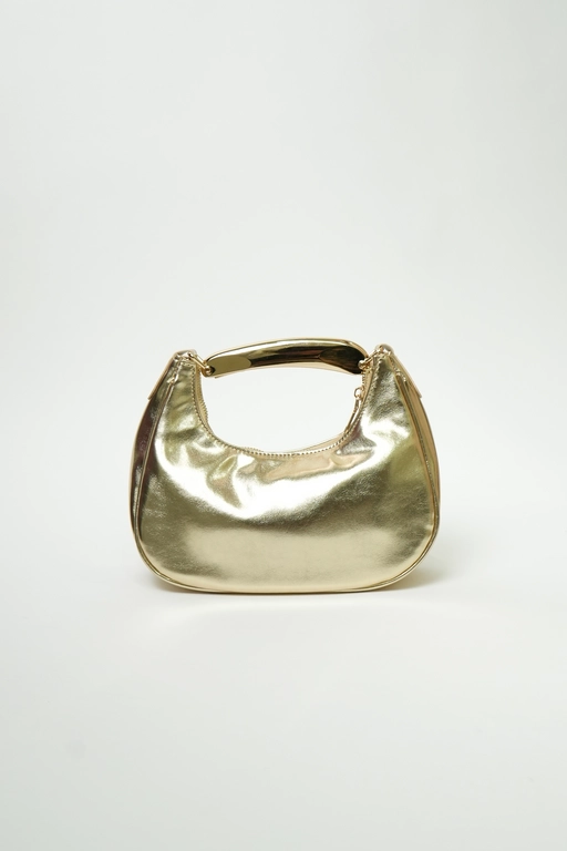 Bolsa chica tipo piel metalica con 1 asa corta y 1 asa de cadena larga