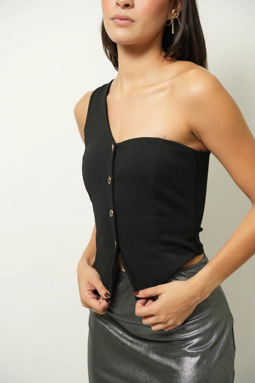 Blusa corta de un solo hombro con botones al frente