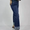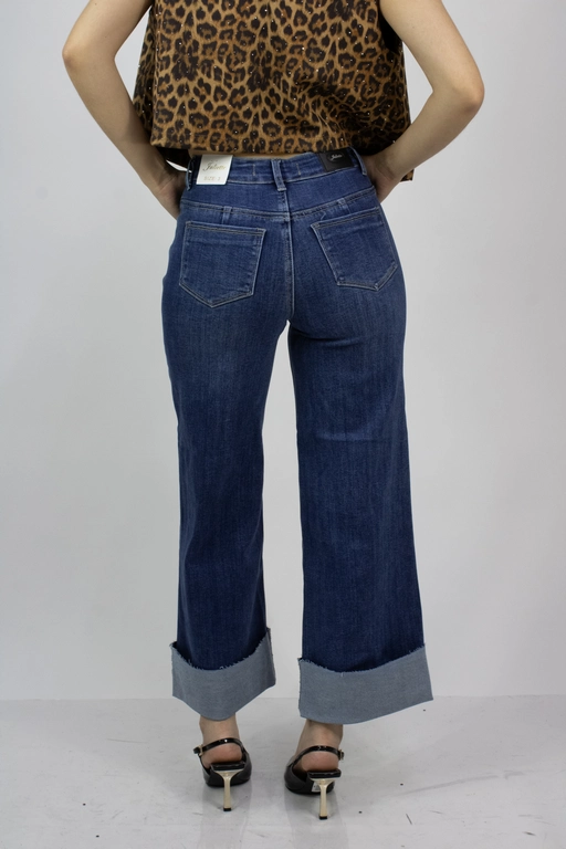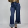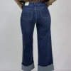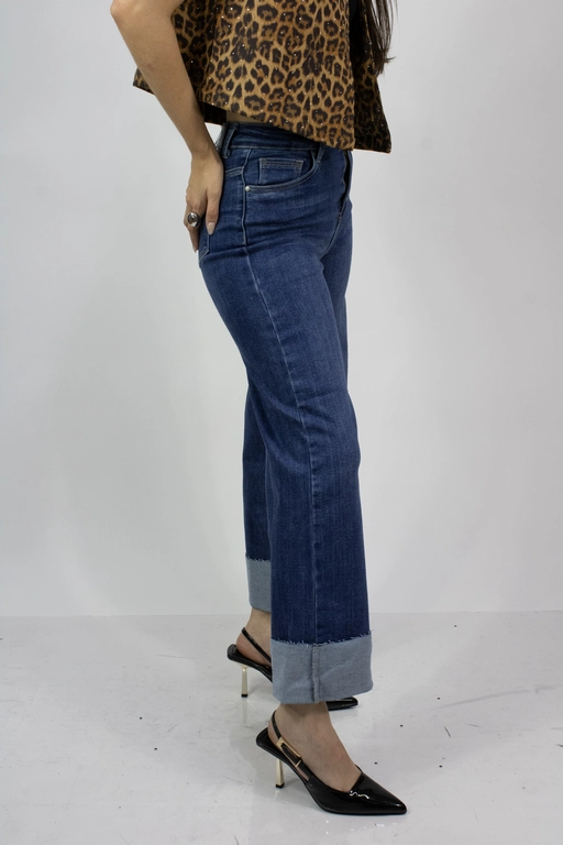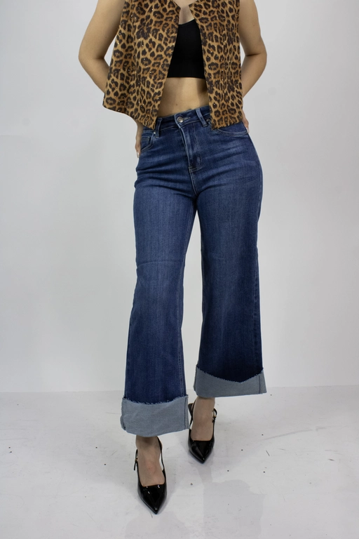 Pantalon de mezclilla corte ancho con dobles en los tobillos