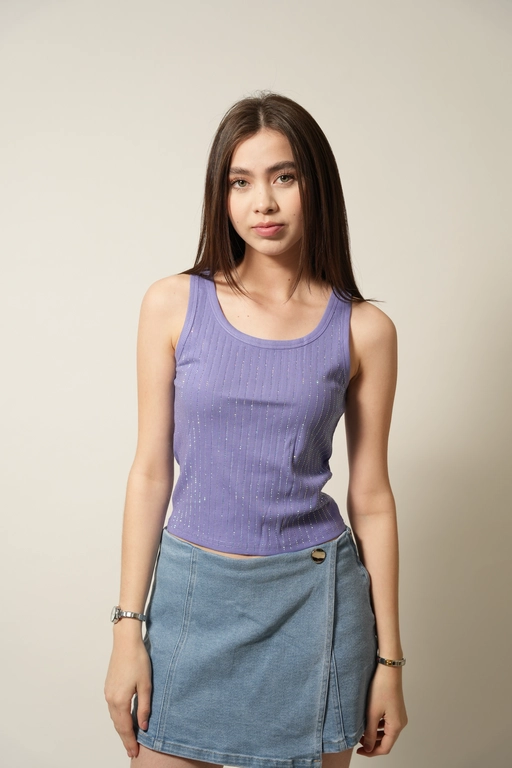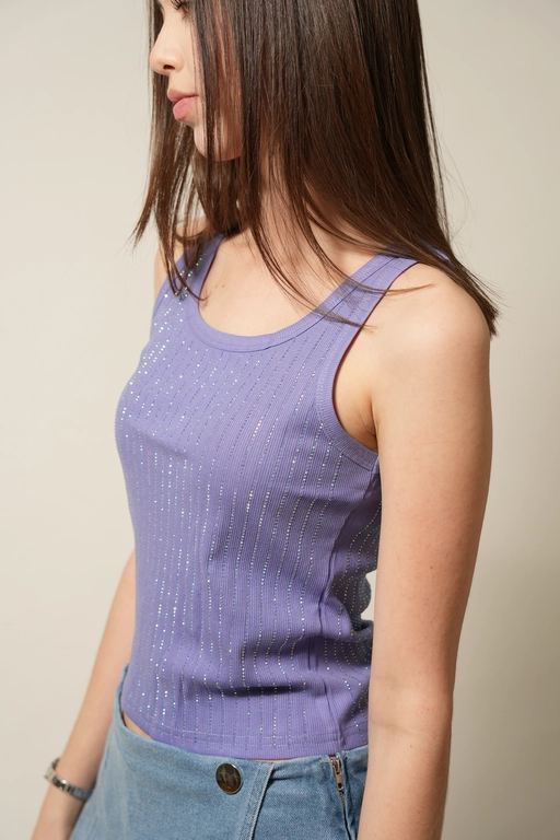 Blusa con aplicacion piedras cuello redondo sin manga
