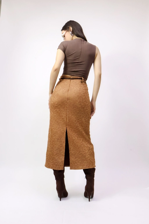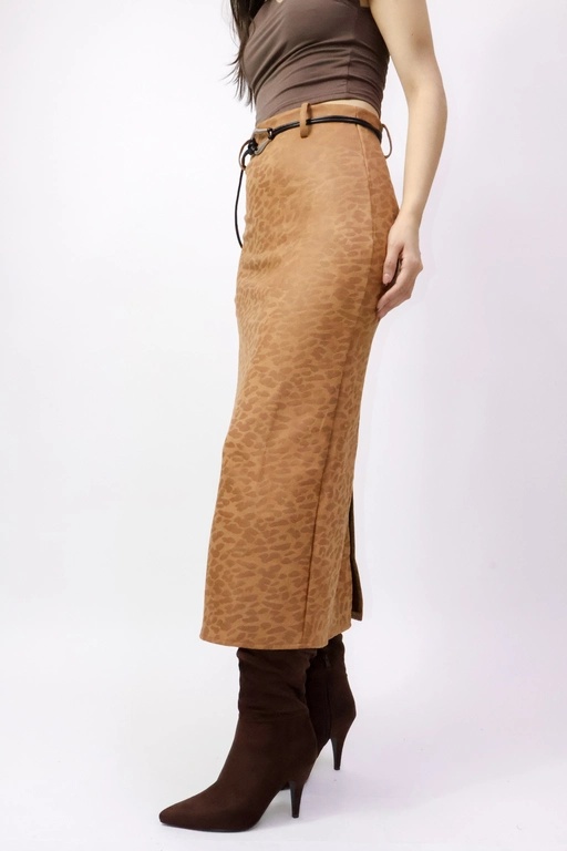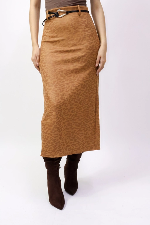 Falda larga tipo gamuza estampado leopardo con cinto