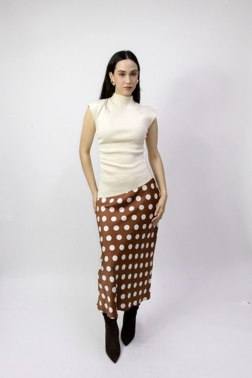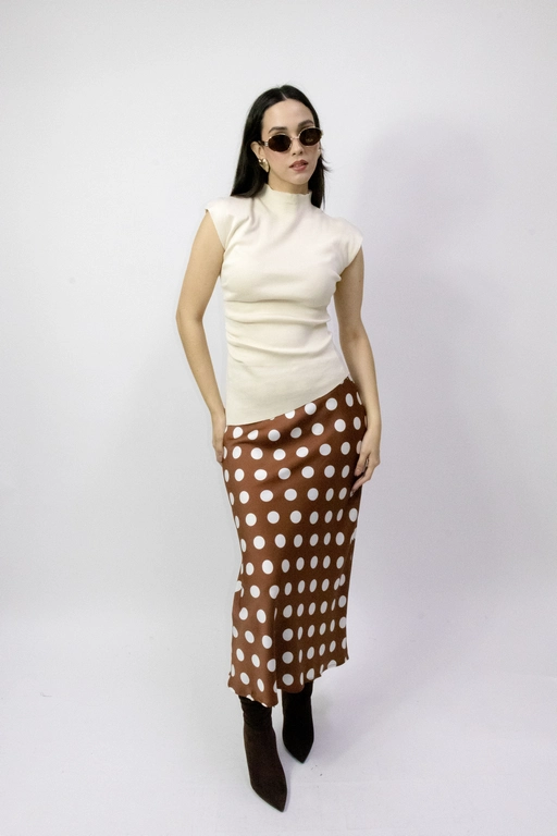 Falda larga en satin con bolas con elastico en la cintura
