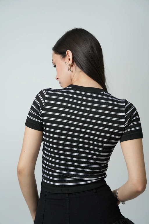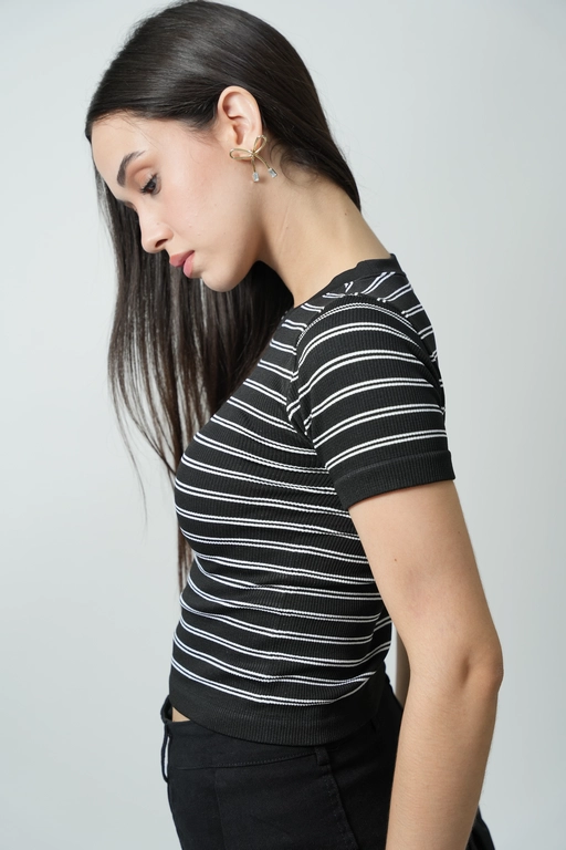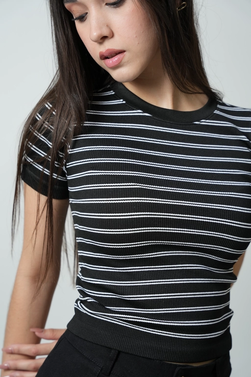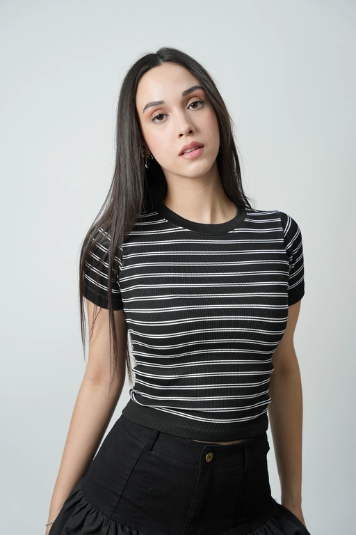 Playera a rayas cuello redondo manga corta