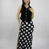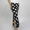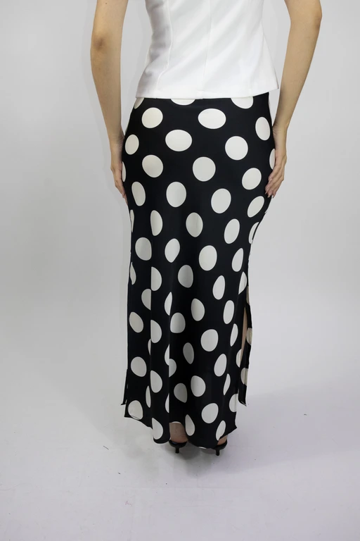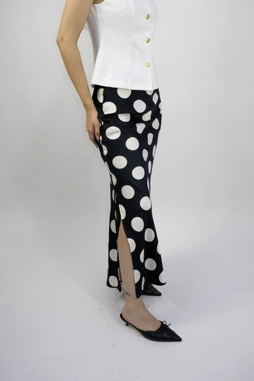 Falda larga en satin estampado bolas abertura a los lados