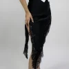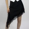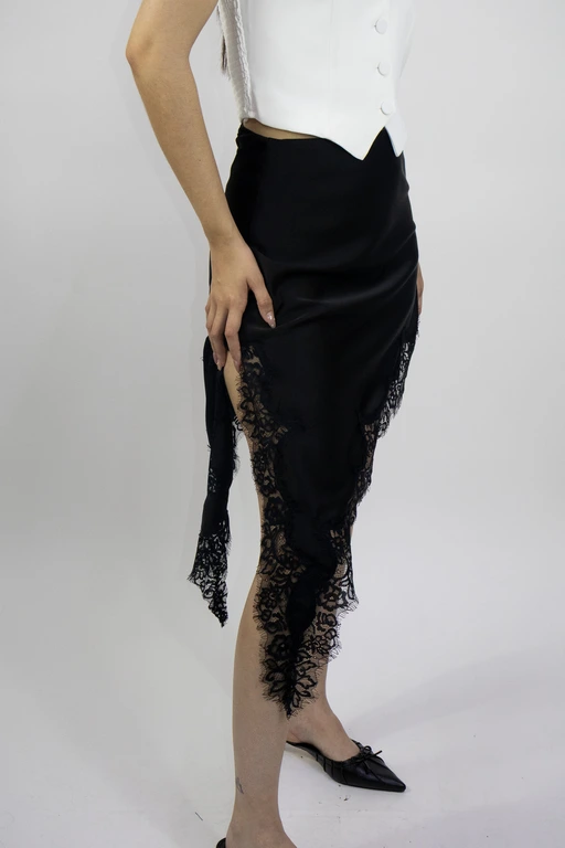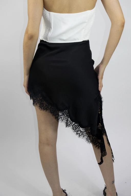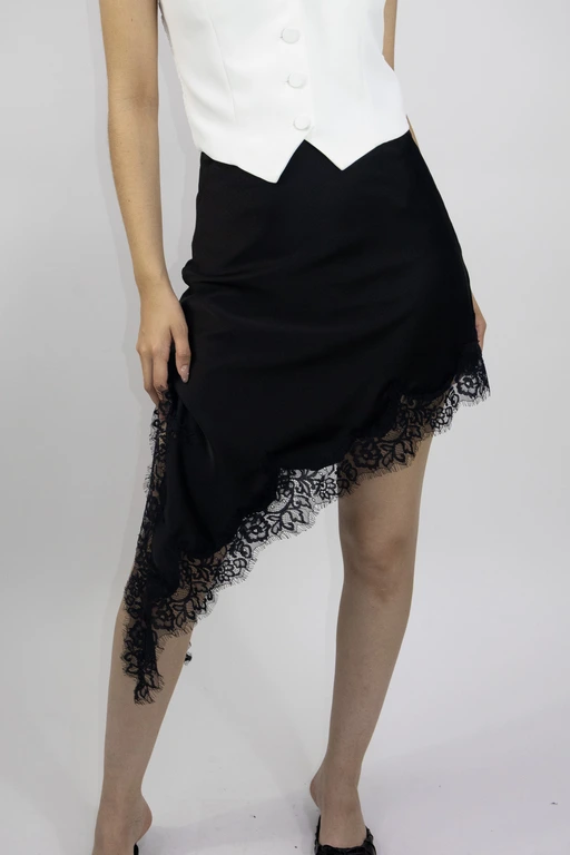 Falda asimetrica de satin con encaje