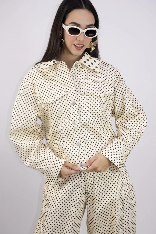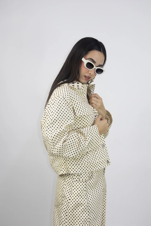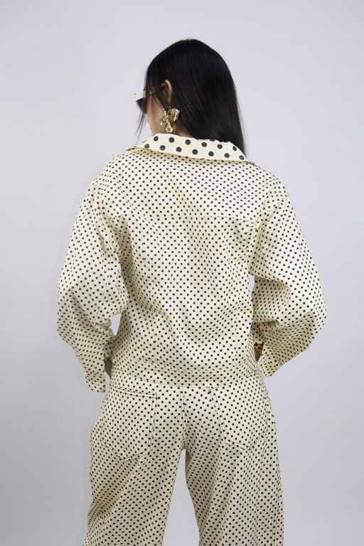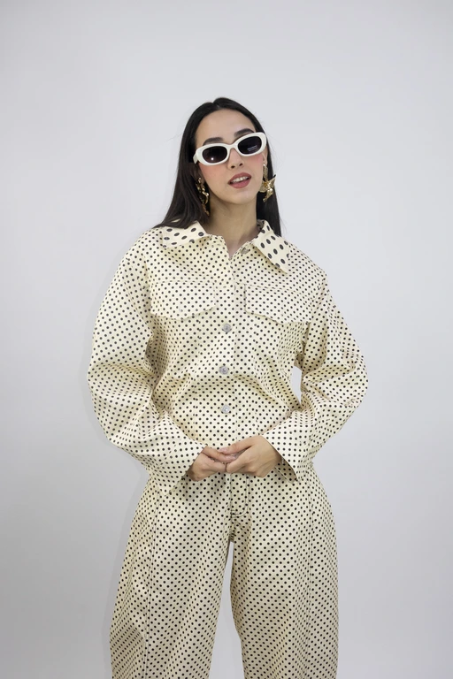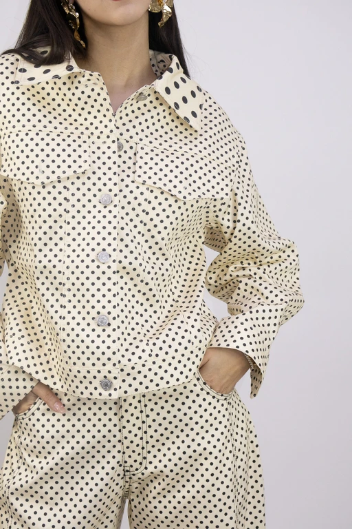 Chamarra de mezclilla estampada puntos