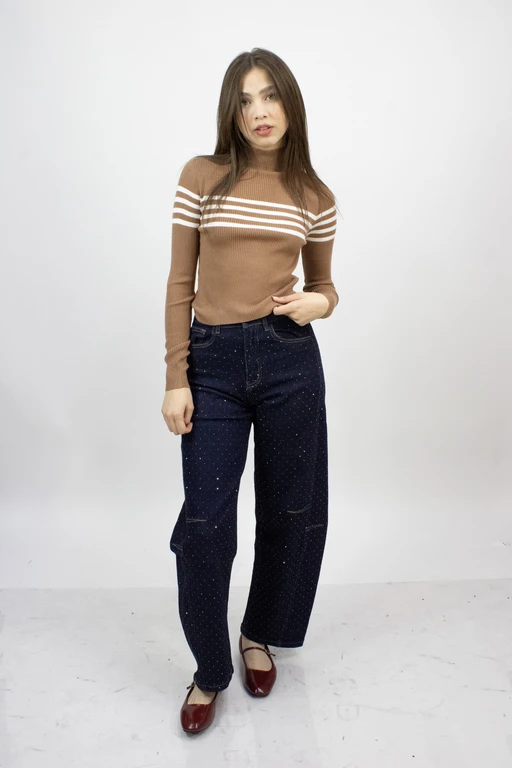 Pantalon barrel con aplcacion piedras