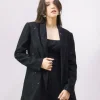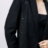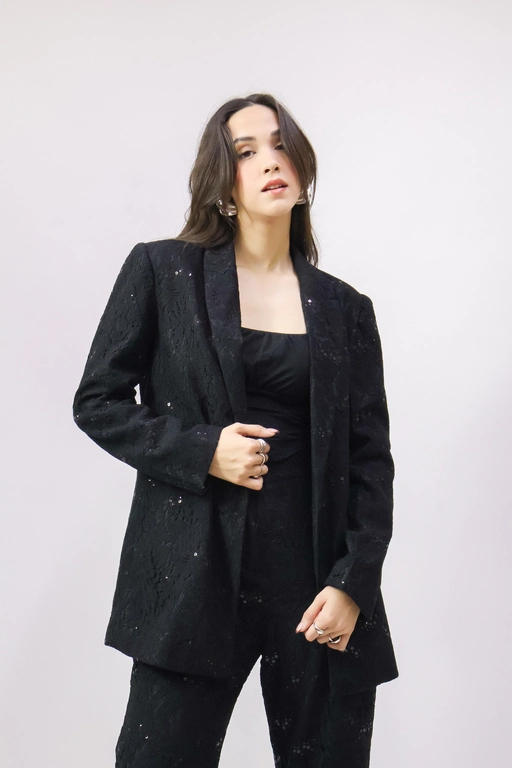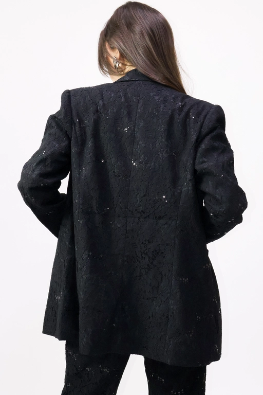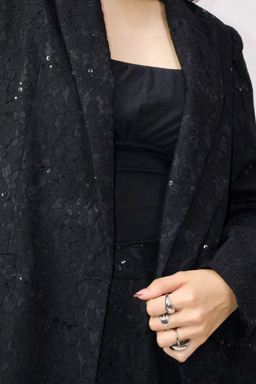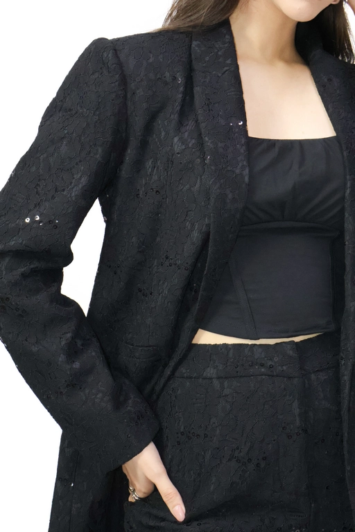 Saco en encaje de solapa y manga larga color solido