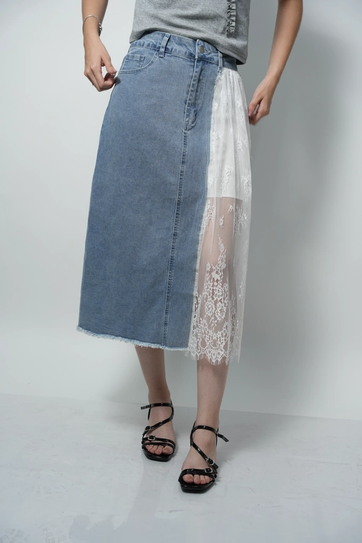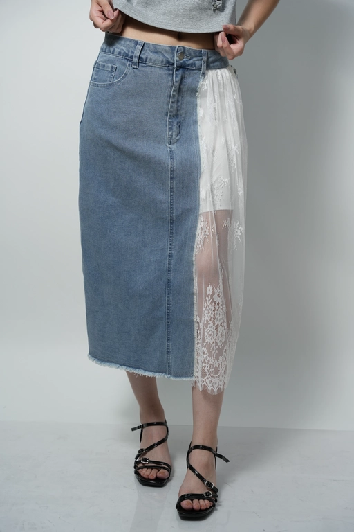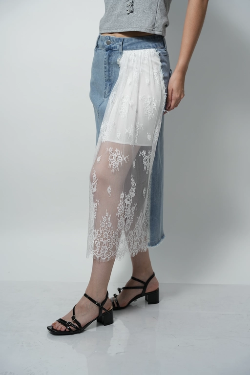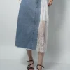 Falda larga de mezclilla con encaje