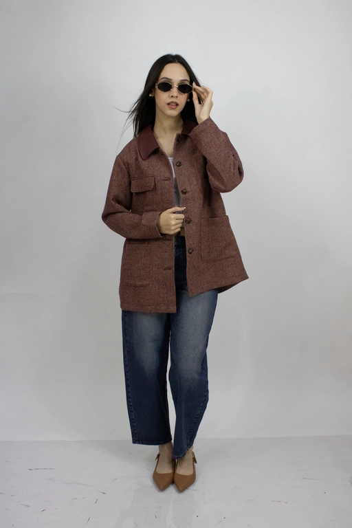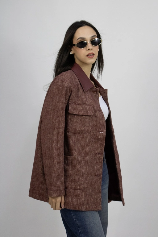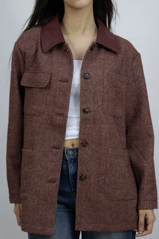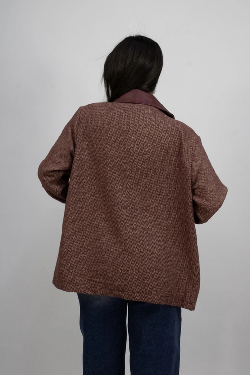 Saco twedd cuello tipo piel botones y bolsas al frente
