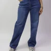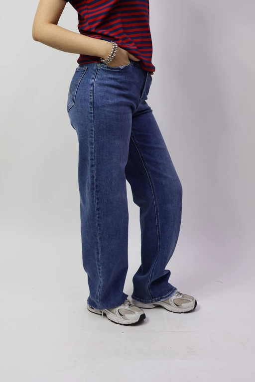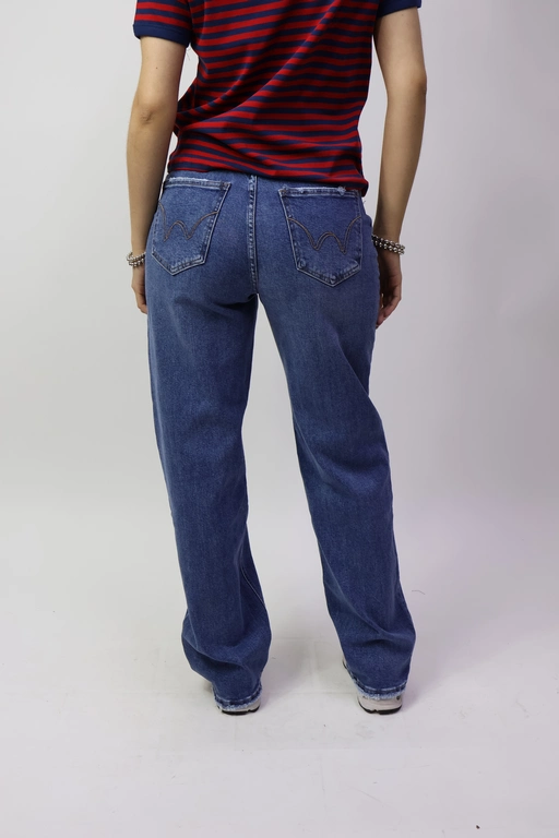 Pantalon de mezclilla recto con bolsas al frente y atras