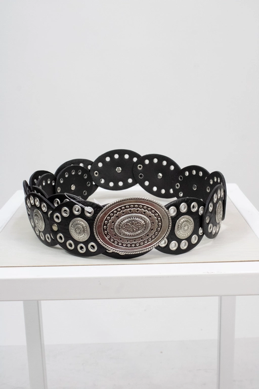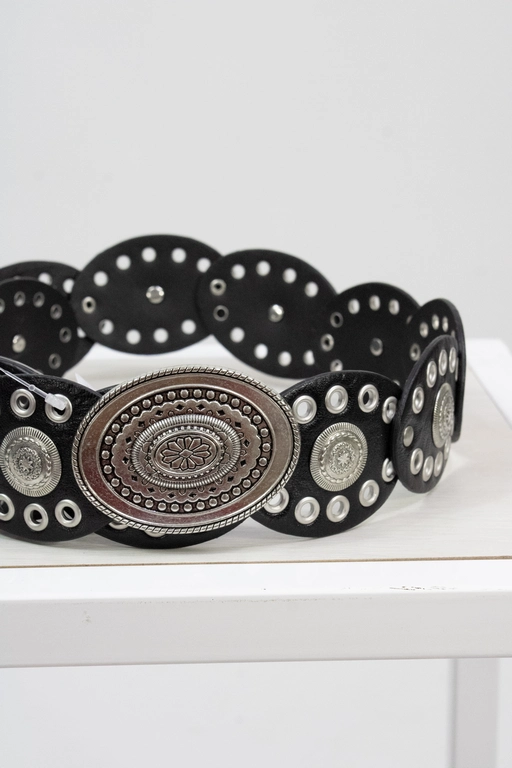 Cinto vaquero con ojillos y hebilla metalica