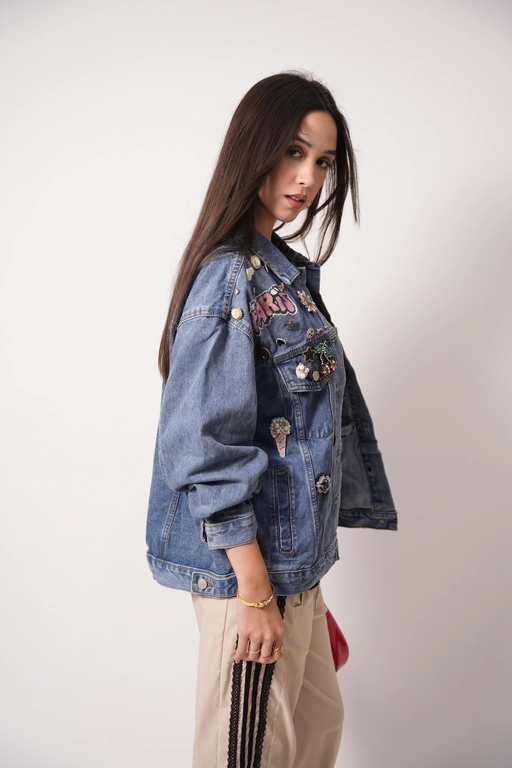 Chamarra de mezclilla con aplicaciones