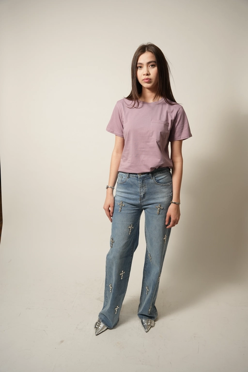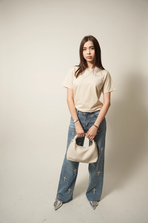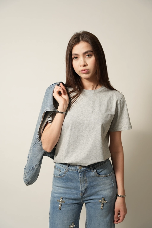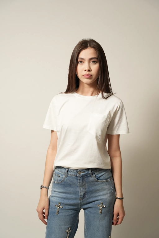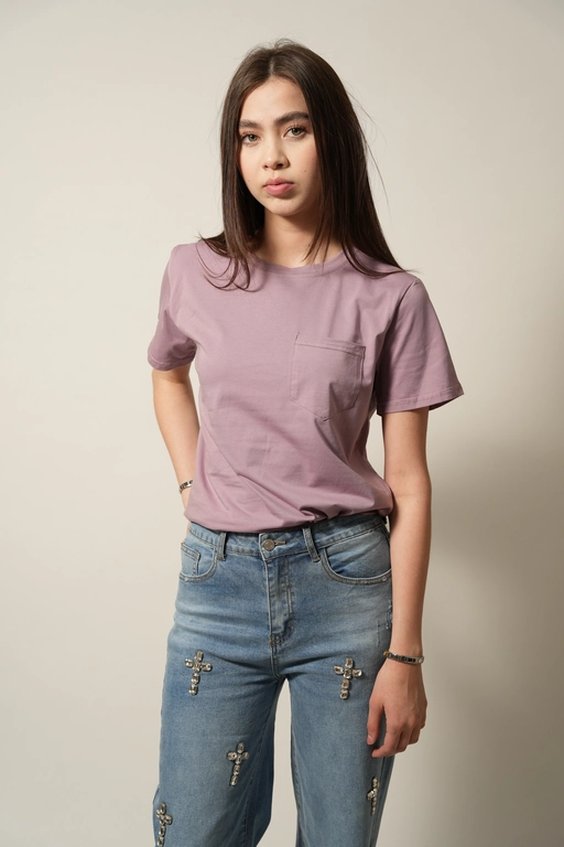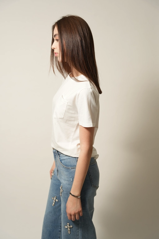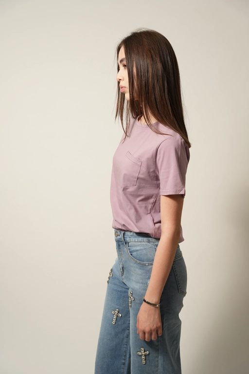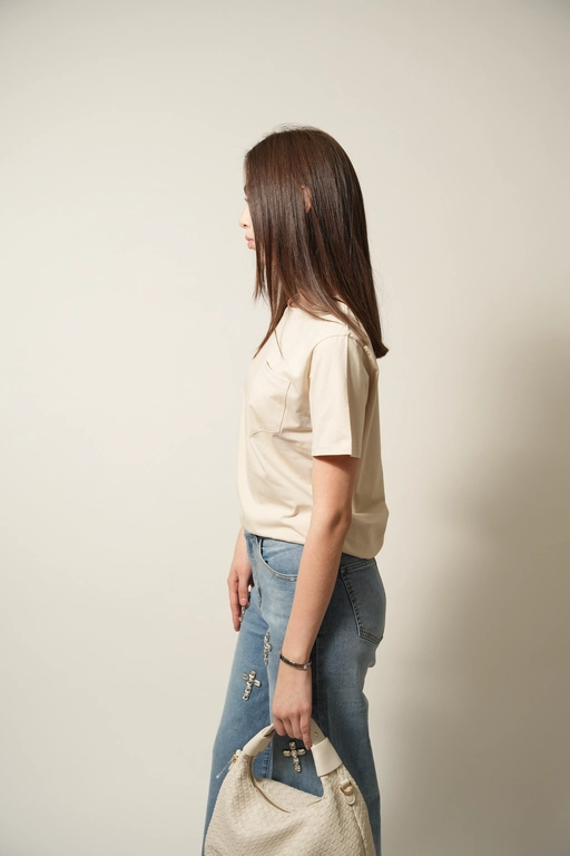 Blusa basica con 1 bolsa cuello redondo manga corta