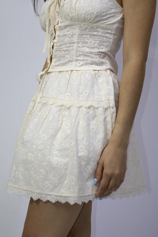 Mini falda bordad con vistas de guipure