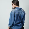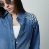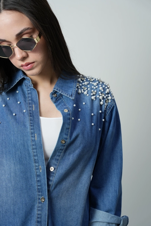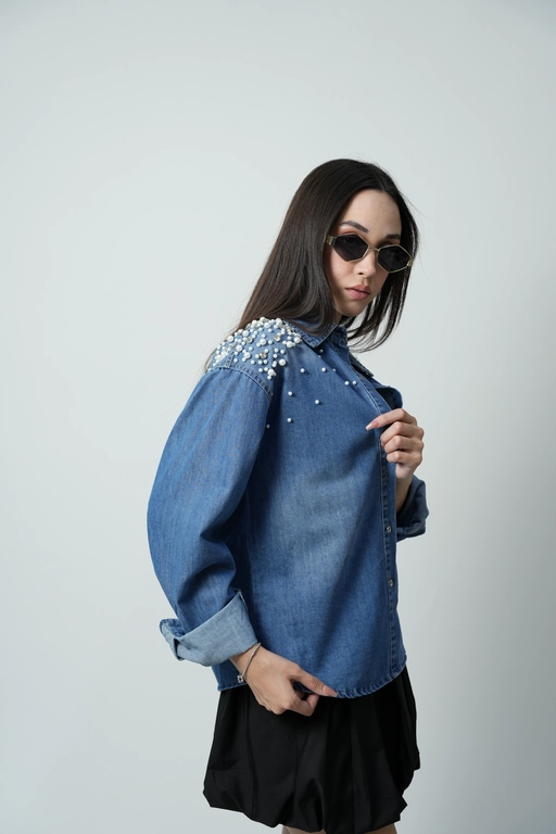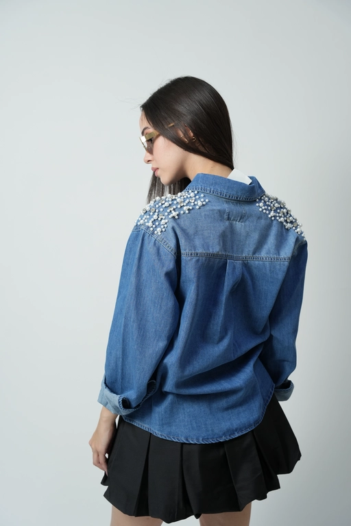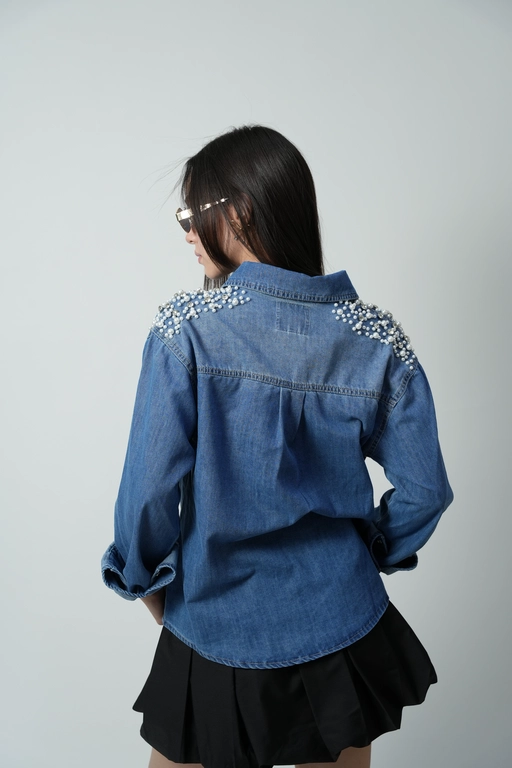 Sobrecamisa de mezclilla con aplicacion perlas y piedras