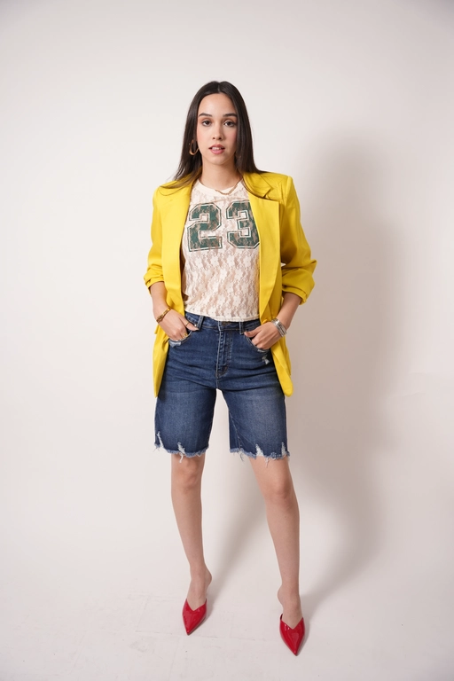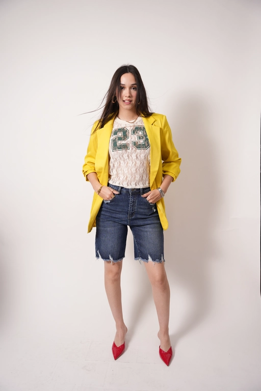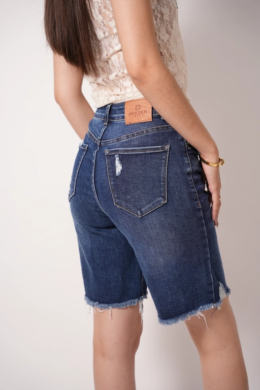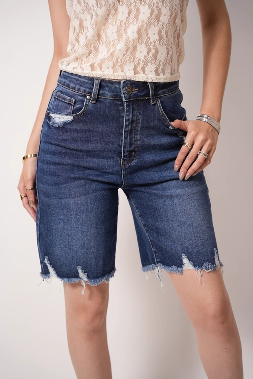 Bermuda de mezclilla deshilada