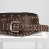 Cinto ancho con estoperoles y hebilla metalica