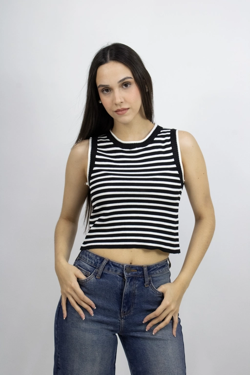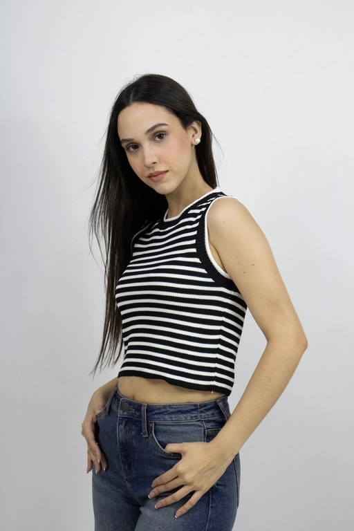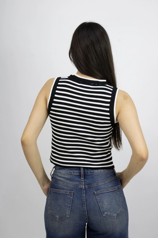 Blusa a rayas sin mangas cuello redondo