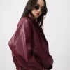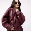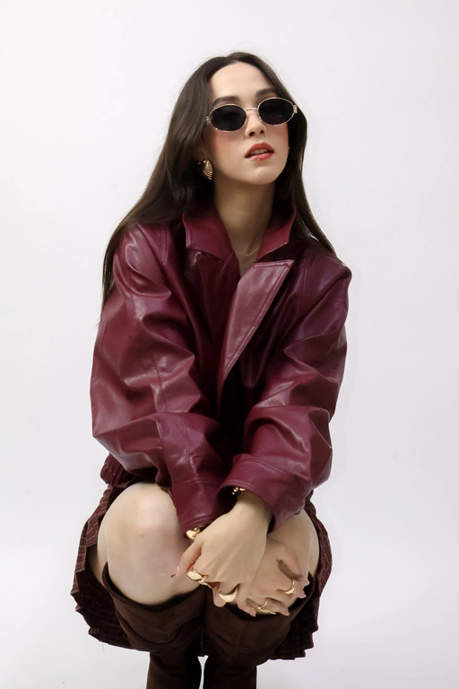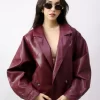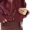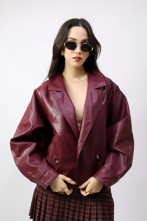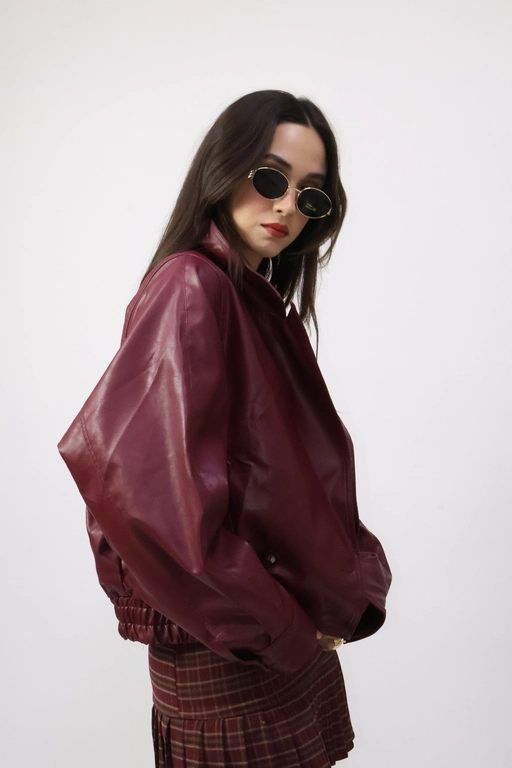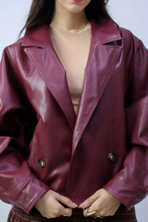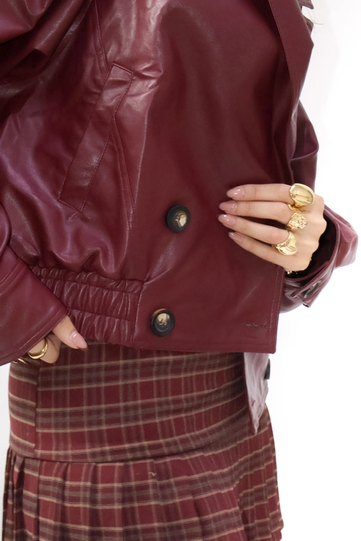 Chamarra tipo piel con solapa y botones manga larga
